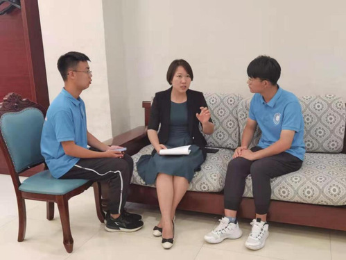 图为实践队员采访滕州市团委书记赵素贤