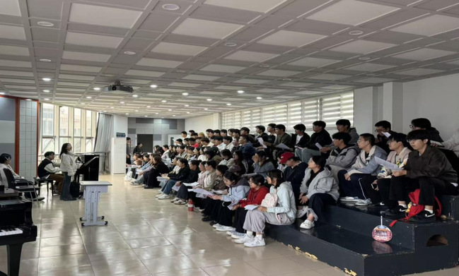 在师生合唱比赛的舞台上,我院师生带来《南泥湾》与校歌《你伴随我》的演唱:《南泥湾》融入奋斗精神,校歌《你伴随我》满含对母校的深情。经反复排练打磨,舞台表演尽显我院师生奋进风貌,收获现场热烈共鸣。
