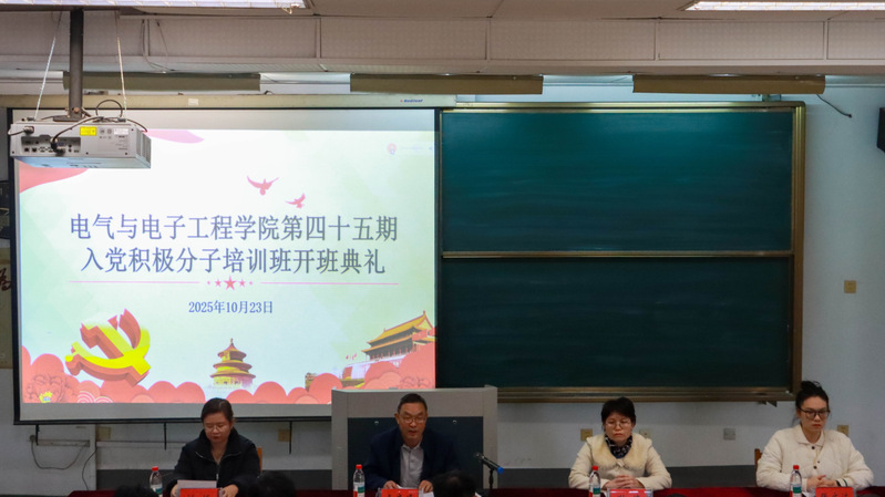 为强化入党积极分子基础性理论学习,提升政治素养和思想觉悟,筑牢党员队伍源头根基,10月23日下午,电气与电子工程学院于15号教学楼203教室举行第45期入党积极分子培训开班仪式。学院党委书记卢彦峰、研究生第一党支部书记谢婕、学生第四党支部书记张文达出席仪式,学院组织员刘烁主持。