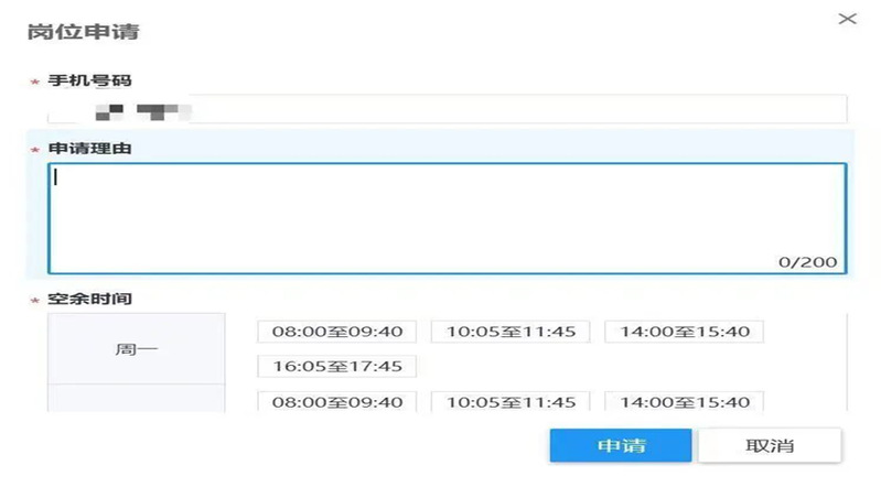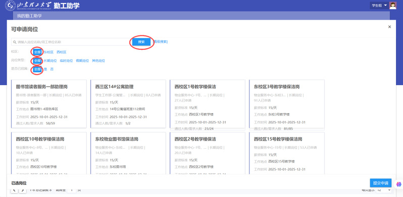 3.校区问题:不同岗位所处校区不同,在申请时务必要留意一下岗位所在校区,避免申请到其他校区岗位。