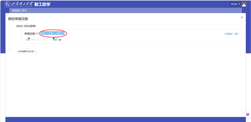 5.在“岗位申请记录”中,可查看所提交岗位及审核信息,等待岗位负责老师进行审核。