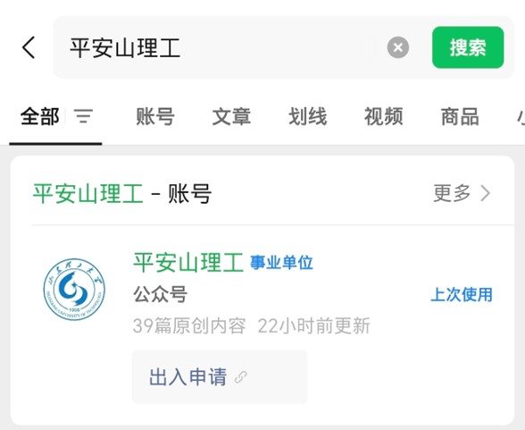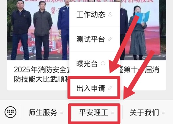 2.点击平安山理->出入申请