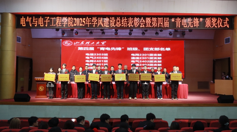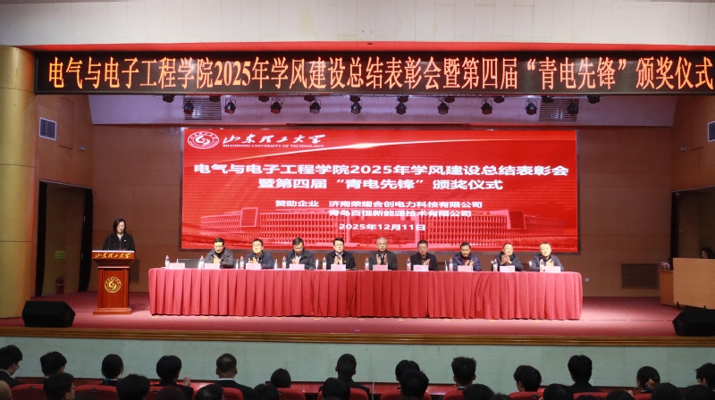 为贯彻立德树人根本任务,充分发挥先锋模范的示范引领作用,不断加强学风建设,12月11日下午,电气与电子工程学院在3号教学楼报告厅举行2025年学风建设总结表彰会暨第四届“青电先锋”表彰颁奖仪式。济南荣耀合创电力科技有限公司董事、党支部书记柳滨,青岛百恒新能源技术有限公司总经理、创始人王仕林,校党委常委、副校长张守珩出席仪式,企业有关领导、校学生工作部、校团委负责人、电气学院有关领导、受表彰学生及部分学生代表参加仪式。仪式由电气学院党委副书记王潇伟主持。
