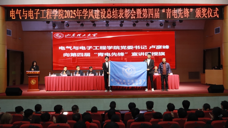 会上,学院党委书记卢彦峰向第四届“青电先锋”宣讲团授旗。