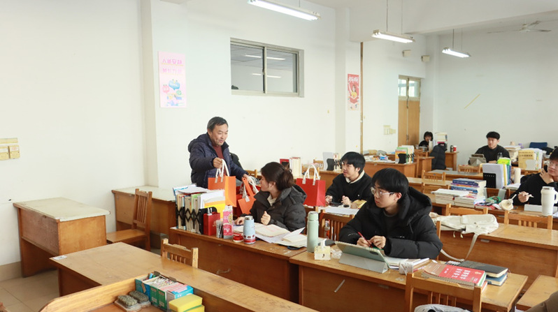 寒窗苦读,亮剑在即。为鼓舞2026届考研学子最后冲刺的斗志,12月15日上午,电气与电子工程学院领导班子、各科室主任及毕业班辅导员老师一行,带着精心准备的定制礼物与暖心祝福,走进紧张的考研自习室,为正在埋头奋战的学子送上冬日温暖。