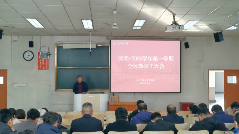 为凝聚共识、明确方向,推动学院各项事业高质量发展,近日,电气与电子工程学院在5号教学楼206教室召开全体教职工大会暨全体党员大会。本次会议由学院党委书记卢彦峰主持。