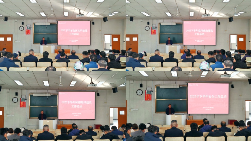 卢彦峰对2025年下半年全面从严治党、师德师风、清廉学院建设、安全稳定等工作进行总结与部署。并提出三点要求:一是要在常态长效上持续用力。要将全面从严治党和师德师风建设的好经验、好做法固化为长效机制,持续抓好理论学习和警示教育,确保“电廉清风”等品牌效应持续深化,问题排查整治常抓不懈。二是要在深度融合上务求实效。要将清廉学院建设、安全稳定要求更深一层融入教学、科研、管理等日常业务,推动廉洁文化、安全意识成为师生的思想自觉和行动自觉,实现党建工作与事业发展同频共振。三是要在压实责任上毫不松懈。各级负责人要切实履行“一岗双责”,紧盯重点领域和关键环节,确保“三重一大”决策、意识形态管理、安全风险防控等各项责任落到实处,以过硬作风保障学院年度目标任务圆满完成。