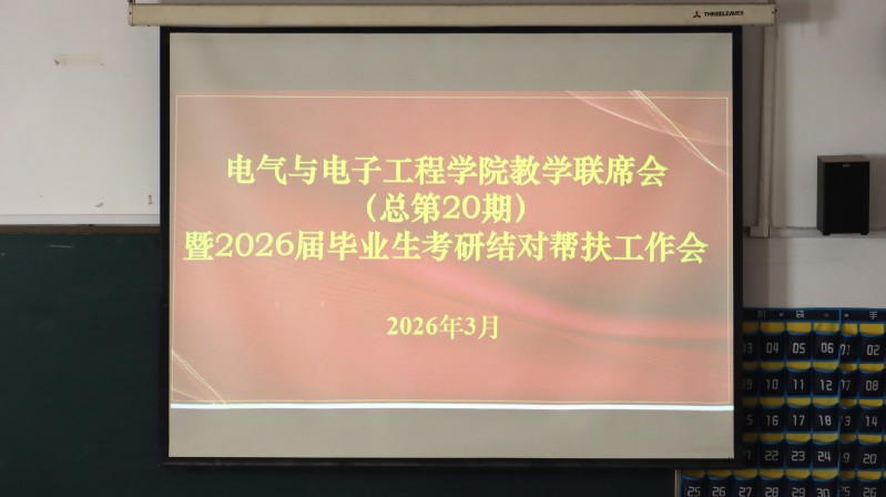 3月12日下午,电气与电子工程学院于13号教学楼315教室召开教学联席会(总第20期)暨2026届毕业生考研帮扶工作会,精准服务2026届考研学生复试调剂需求,切实为学生排忧解难。学院党委书记王振出席会议,部分专业教师、2026届毕业生代表参会。