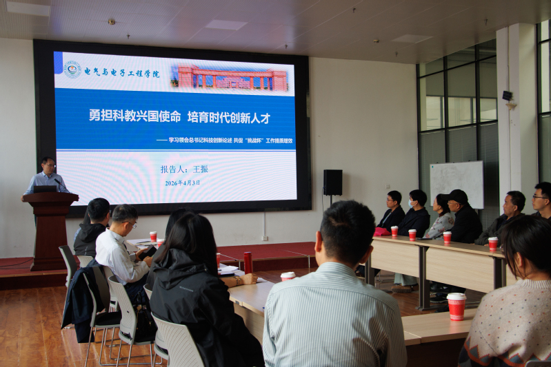 为深化学院“青电双创”育人体系建设,提升人才培养质量,4月3日上午,电气与电子工程学院在大红炉众创空间二楼路演大厅举办2026年春季学期青电双创导师沙龙,总结谋划学院创新创业工作。学院党委书记王振、创新创业学院副院长马立修、全体双创指导教师及新入职青年博士参加,会议由学院党委副书记王潇伟主持。