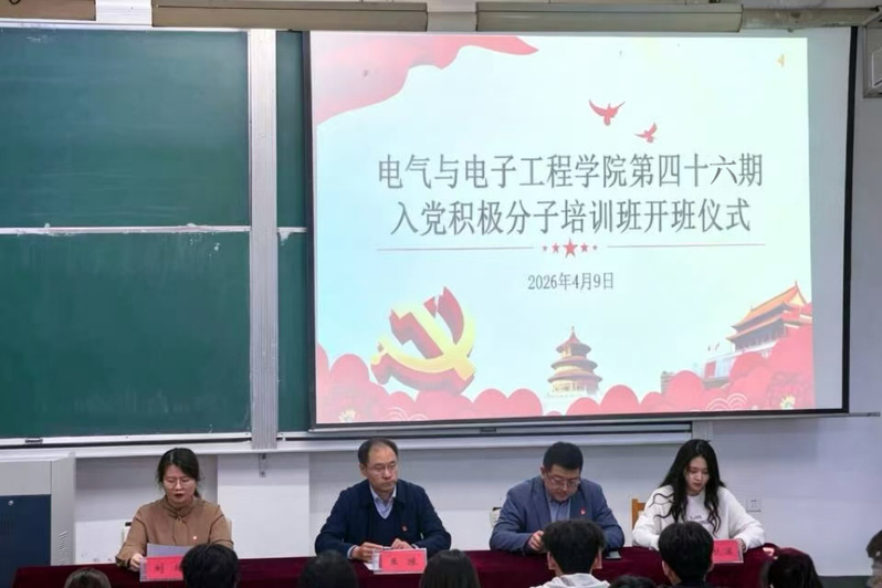 为深入学习贯彻党的理论知识,强化入党积极分子培养教育,引导青年学子坚定理想信念,4月9日下午,电气与电子工程学院于15号教学楼102教室举行第46期入党积极分子培训开班仪式。学院党委书记王振、学生第一党支部书记程凯、学生第六党支部书记李秋实参加仪式,学院组织员刘烁主持会议。