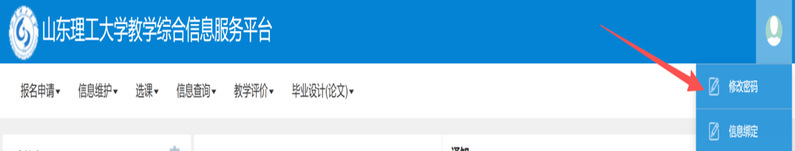 2.在教务系统已登录的情况下,可以在右上角个人头像处点击“修改密码”快速修改密码。