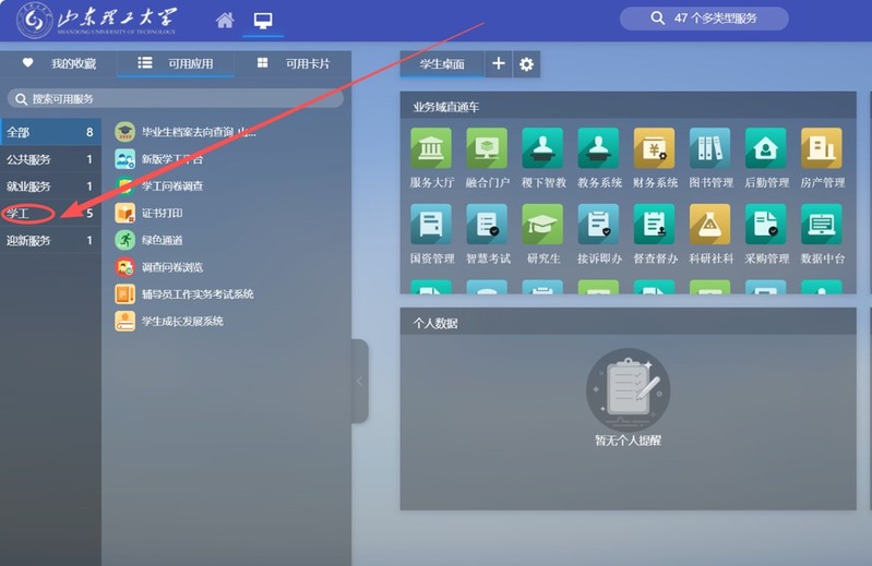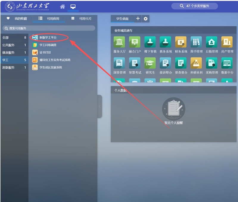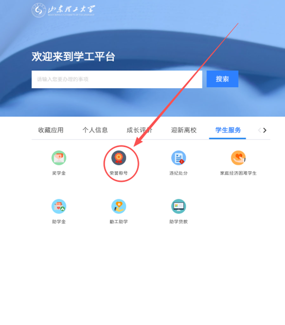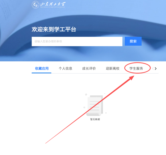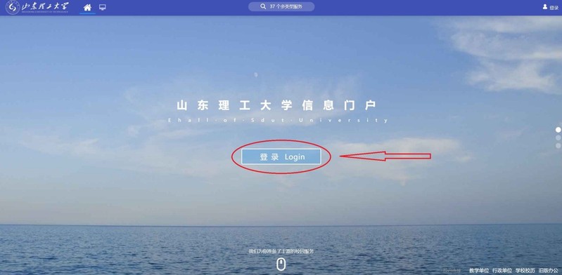 1.进入山东理工大学信息门户并登录。(https://ehall.sdut.edu.cn/new/ehall.html