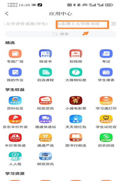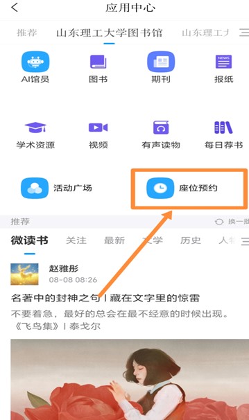 3.打开学习通---首页---应用中心---山东理工大学图书馆---座位预约