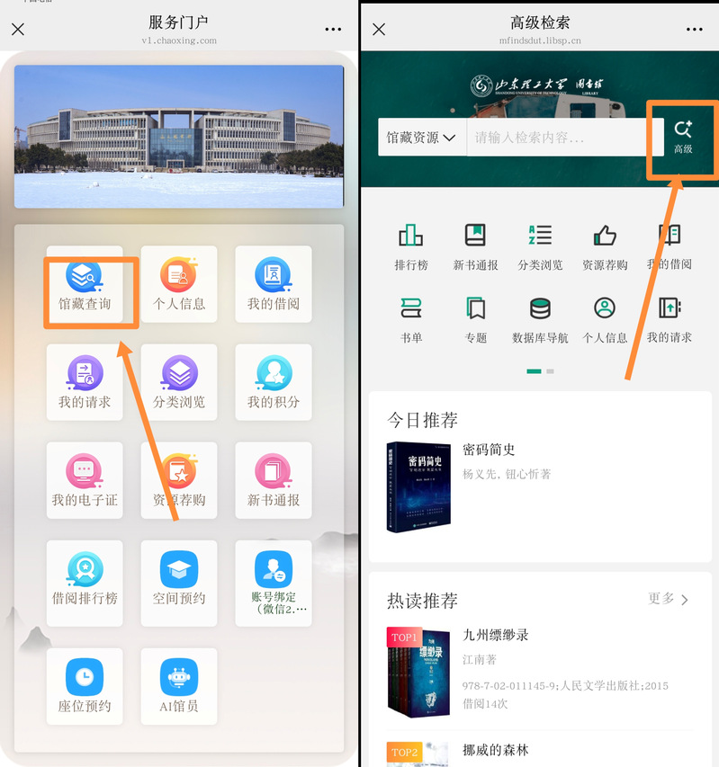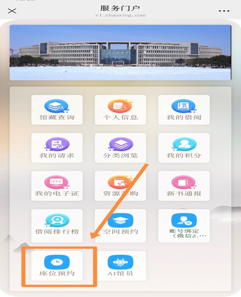 2.通过“山东理工大学图书馆”微信公众号进行座位预约