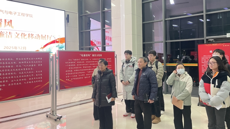 与会人员共同参观了电气与电子工程学院“电廉清风”廉洁文化移动展厅。(牟振华)